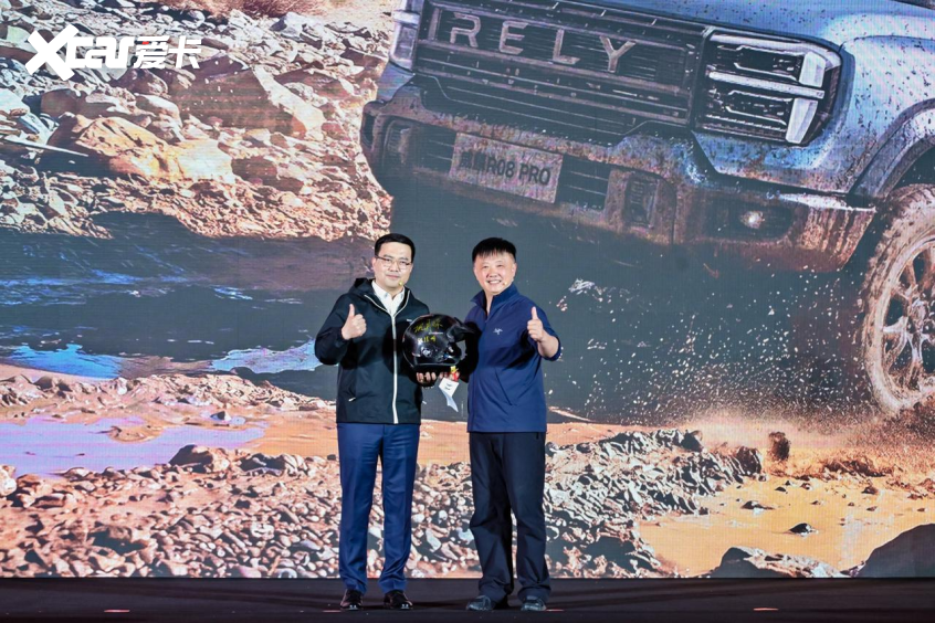 威麟R08 PRO强悍的越野表现,离不开深深热爱越野的专业团队对产品的反复打磨。这其中,就包括威麟老车主陶鹏飞。陶鹏飞作为奇瑞赛车队队长,不仅是中国汽车场地越野锦标赛冠军车手,更是中国环塔(国际)拉力赛冠军车手,常年征战各类越野赛场。发布会上,奇瑞RELY威麟皮卡事业部总经理张佳明对陶鹏飞在产品开发期间所提供的支持表示感谢,并赠送其专属头盔。张佳明表示,赠送头盔既是对陶鹏飞多年来信任与支持的回馈,也彰显了奇瑞威麟对用户安全的极致守护。同时他强调,对于普通消费者,奇瑞威麟皮卡始终贯彻首任车主整车终身质保的品牌承诺,让每一位用户都能买得放心、用得安心。