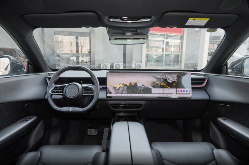 来到车内,可以看出马自达EZ-60的内饰拥有不错的视觉美感,皮质方向盘能上下前后调节,还带加热,冬天握着特别舒服。用的是电子怀挡,中控下面空出一大片空间,用着也顺手。另外像无钥匙进入、远程启动、50英寸 AR-HUD 抬头显示、行车记录仪这些实用配置也都配齐了。