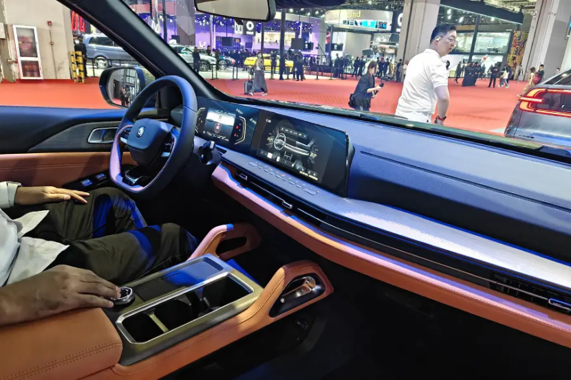 内饰部分,新车采用上黑下棕的配色方案,整体的造型布局与长安览拓者基本保持一致,并且采用了液晶仪表+中控屏的双联屏的组合。副仪表台处还配有双侧把手。